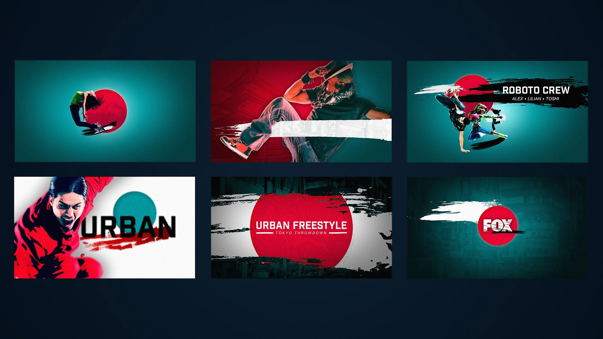 The brief: Fox is launching a new show called Urban Freestyle: Tokyo Throwdown. The show is a Dance-Competition that takes place in Tokyo, Japan. Teams of break dancers compete each week on the streets of Tokyo in head-to head dance battles. We are looking for a Show Open design, as well as a Title Design for the show.These boards must show us how you’ll treat green-screened footage of the dancers, how you’ll ID the names of the Dance Teams, what the Title will look like, and how you will incorporate the Fox logo into the design.